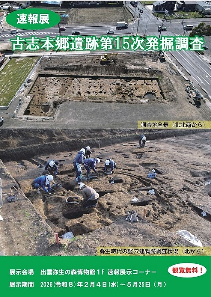 古志本郷遺跡(出雲市古志町)は、弥生時代から続く集落遺跡です。 発掘調査では、弥生時代・奈良時代・戦国時代以降の生活跡が見つかりました。新たに見つかった弥生時…