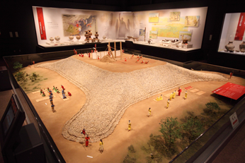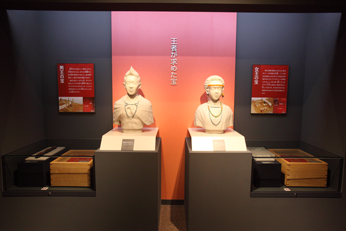 ここでは、西谷3号墓出土品をはじめとする実物資料に加え、西谷3号墓での祭祀のようすを再現した1/10スケールのジオラマなどを通じて、王をとりまく弥生時代の出雲のすがたを感じることができます。