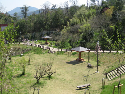 - 博公園駐車場、エントランスにはトイレと休憩所が整備されています。