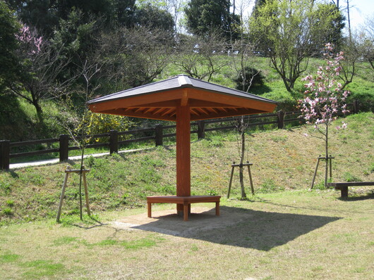 3号墓の墳頂(頂上)には、発掘調査で明らかになった埋葬状況が等倍の写真で表示されているほか、葬送儀礼の際に立てられた柱の一部を再現しています。 また、ここは眺望も良く、簸川平野を一望できるビューポイントとなっています。