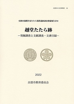 幕末から明治初年に出雲国で一二を争うほどの隆盛を極めた鉄山師の田儀櫻井家。本書は、田儀櫻井家が現在の出雲市多伎町口田儀の日本海沿岸部で経営した「海のたたら」である越堂たたらの総合的な調査研究報告書です。越堂たたら跡の高殿やその周辺の発掘調査の成果、関連する文献史料の調査成果、および文書目録を収録したほか、越堂たたらに関する論考を掲載しています。令和4年発行。 | 1,430円 |
